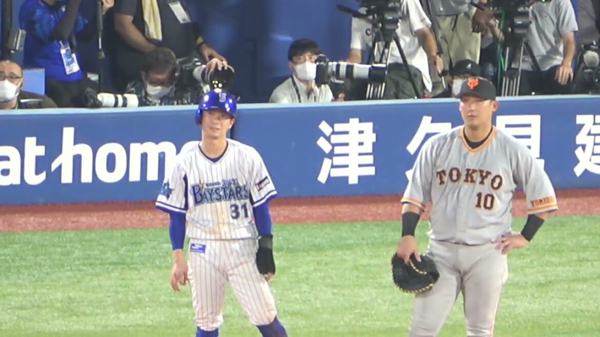 セーフ? アウト? 仲良くモニターを見つめる柴田竜拓と中田翔 横浜DeNAベイスターズ 2022/8/16
