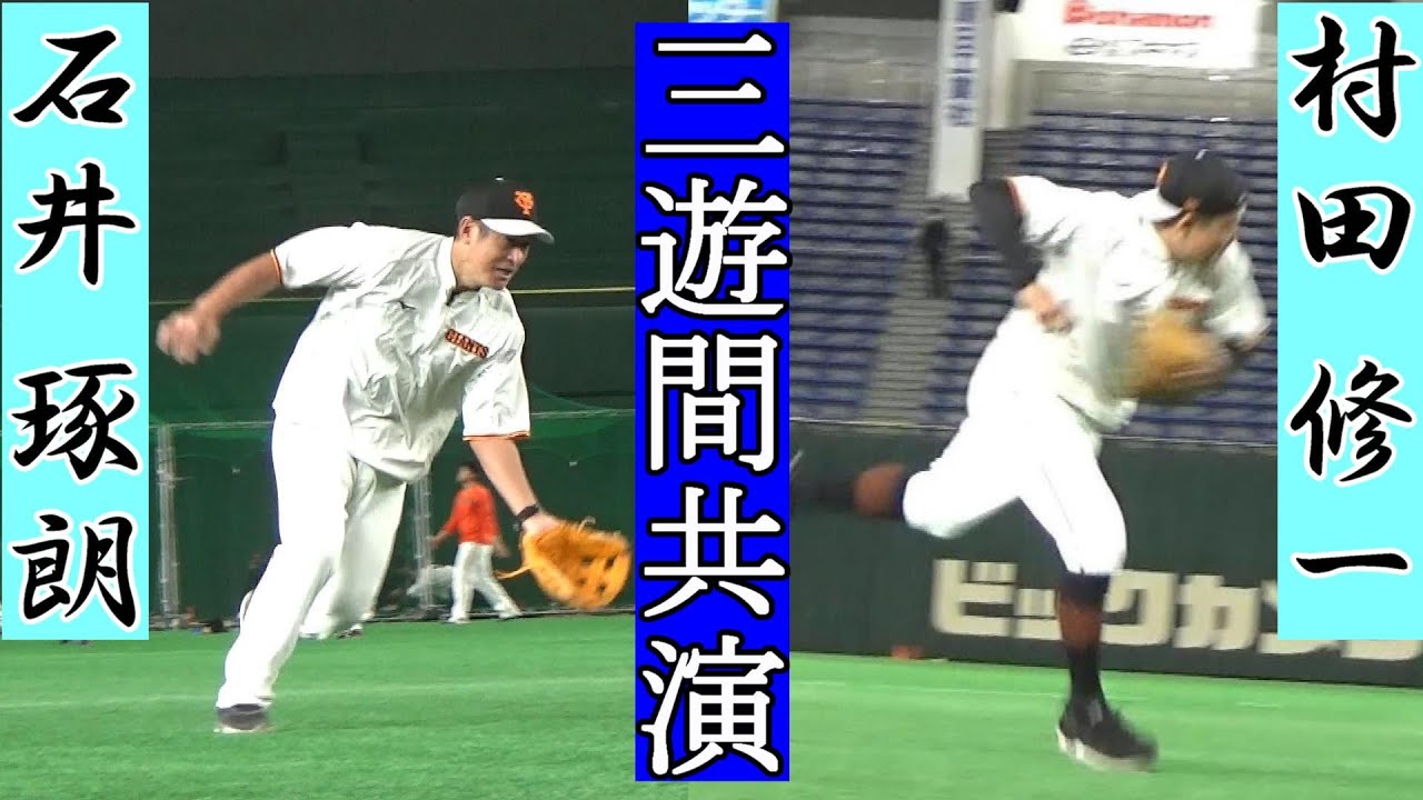 ある日の練習前、村田修一野手総合コーチと石井琢朗野手総合コーチがノックを受けていました。横浜ベイスターズ時代、ともに三遊間を守っていたコンビの一夜限りの復活をお見逃しなく!