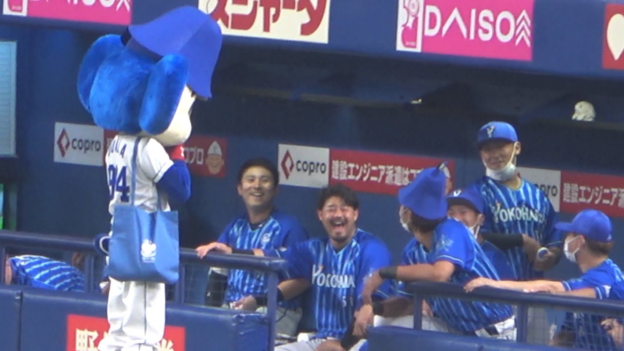 大田泰示にサウナハットを被せてみるドアラ→ベイスターズベンチが爆笑の渦に(笑) (2022/09/13)