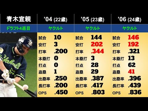 青木宣親選手の年度別個人成績をまとめました。(2022年終了時点)