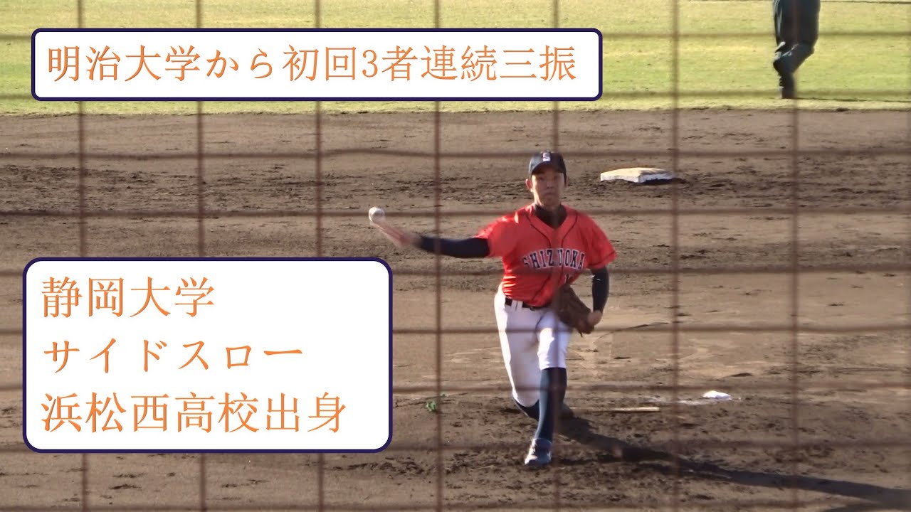 2021/11/20 【初回3者連続奪三振】 吉田哉太 (静岡大学) 2年生 サイドスロー 明治大学戦