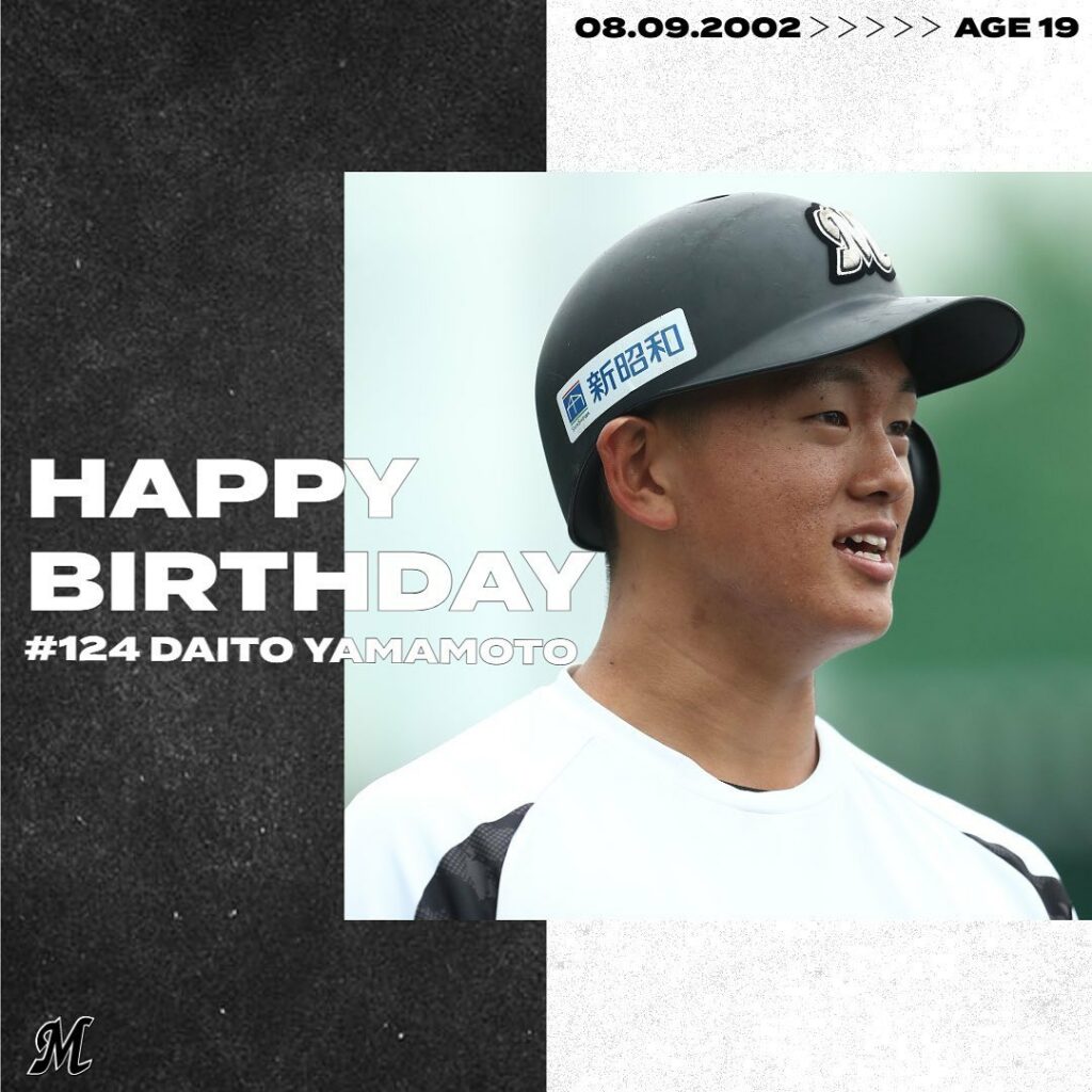 本日8/9は、 #山本大斗 選手の19歳の誕生日です。おめでとうございます! #chibalotte #happybirthday Chiba Lotte MarinesChiba Lotte Marines Official MediachibalottehappybirthdayNPB Pacific LeagueOfficial Media千葉ロッテマリーンズ山本大斗 NPBHUB.COM | The Fanbase of Nippon Baseball & Nippon Professional Baseball