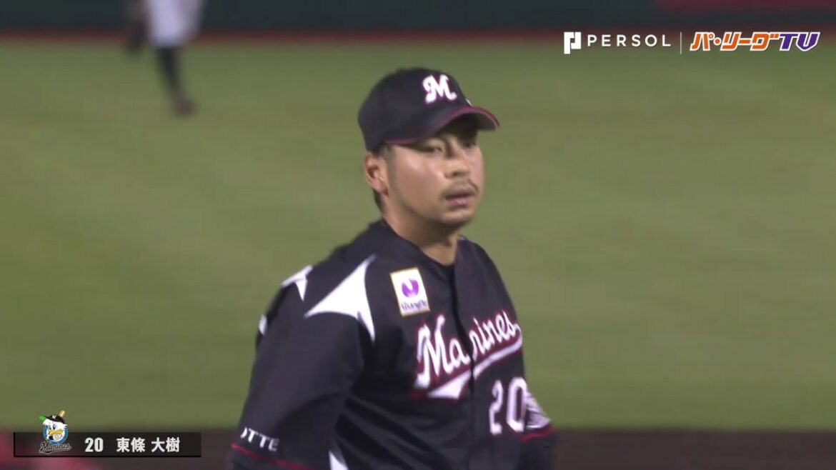 千葉ロッテ・東條大樹は東北楽天の3番,4番をわずか7球で片付け、2者連続三振。15秒でまとめました、本日の東條。