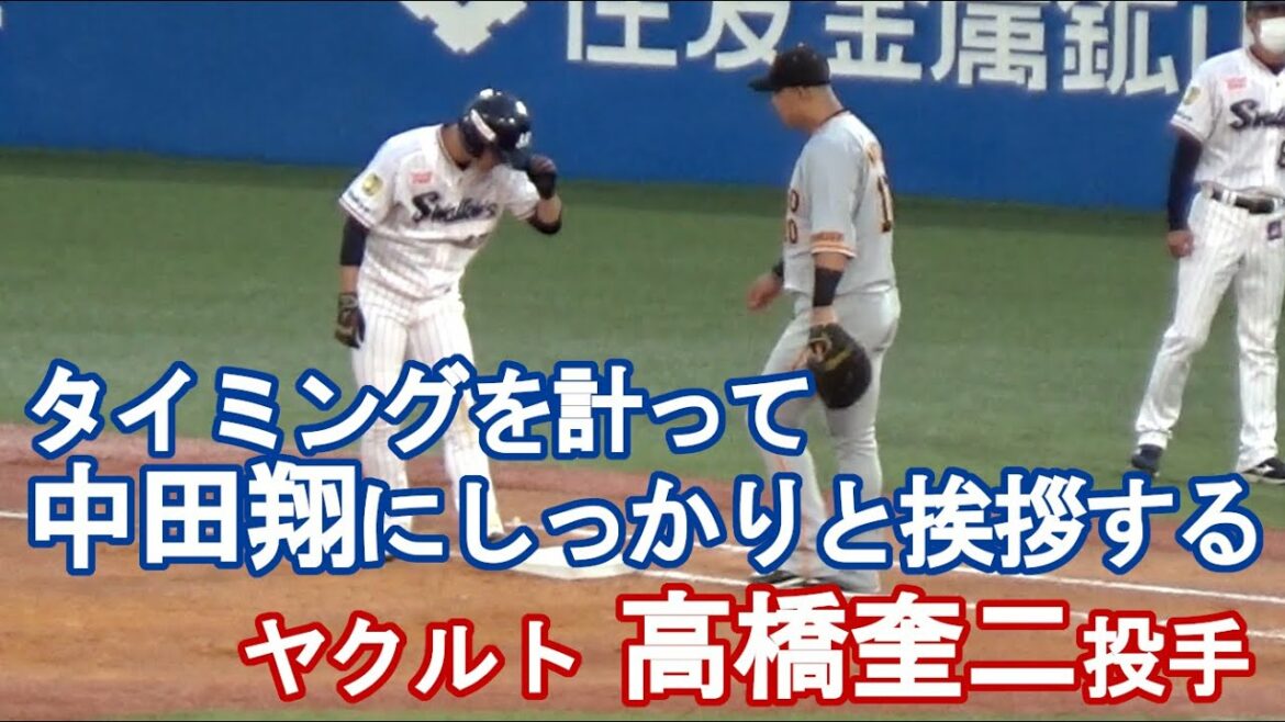 ヤクルトの高橋奎二投手がフォアボールで出塁した際に、