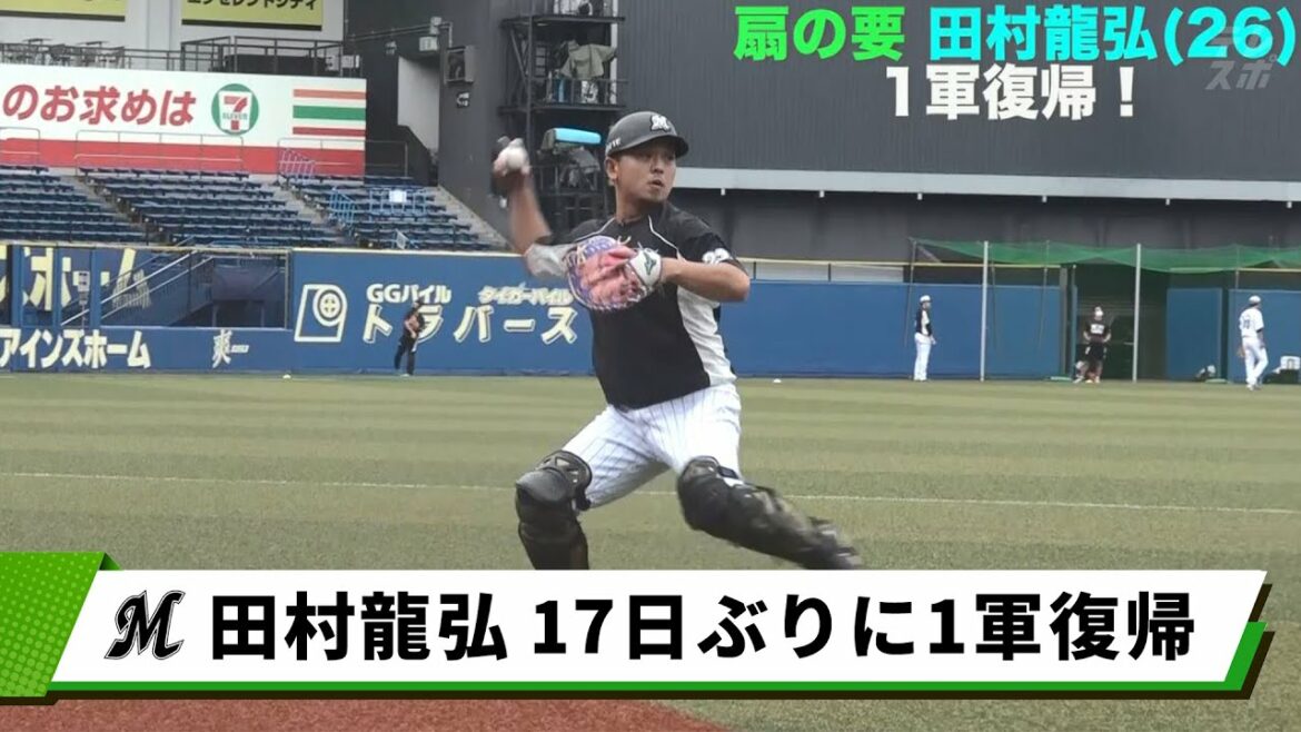 9月9日日本ハム戦で死球を受け、右手人差し指を剥離骨折していたロッテ正捕手・田村龍弘選手が17日ぶりに1軍復帰。逆転でのリーグ優勝へ、欠かせない男が帰ってきました。試合前には柿沼友哉選手、ルーキー佐藤都志也選手と守備練習。変わらない饒舌も健在です。
