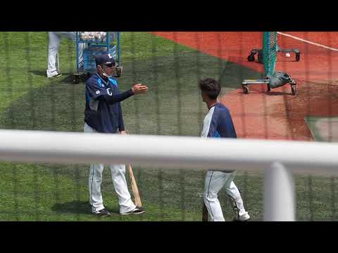 2021.06.12 横浜DeNA-埼玉西武(横須賀スタジアム) 綱島龍生 上本達之コーチからバッティング指導を受ける。