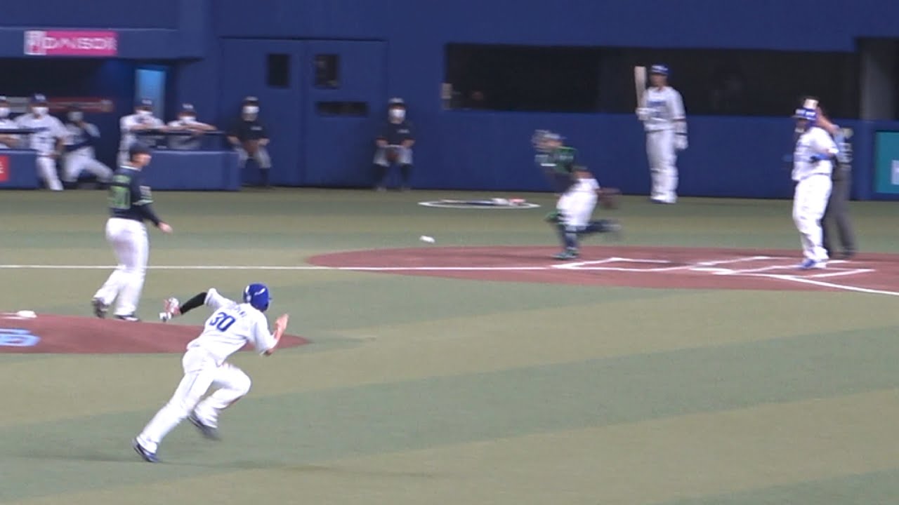 キャッチャーがボールを少し弾いたその瞬間にスタートを切って3塁を陥れた三好の好走塁 (2022/08/21)