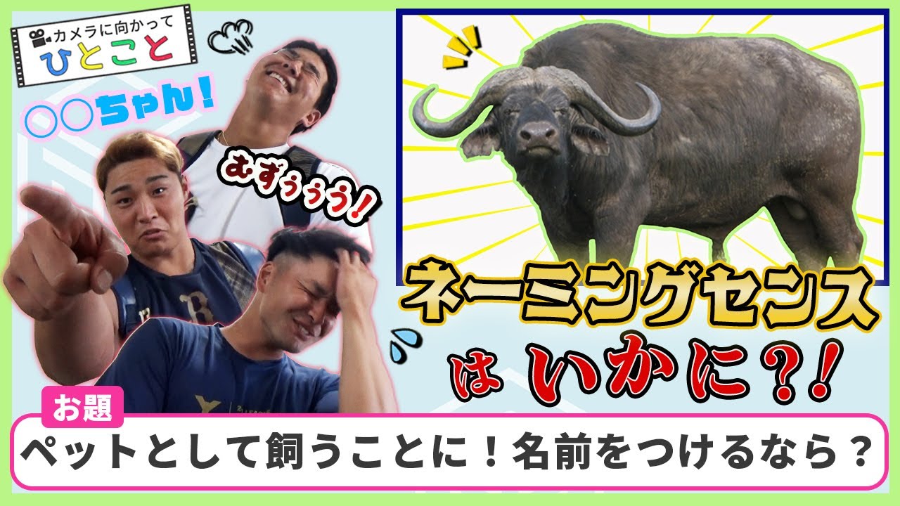 カメラに向かってひとこと言ってもらう「カメラに向かってひとこと」。今回は、牛の写真を選手に見てもらって、「ペットとして飼うことに!名前をつけるなら?」というお題です。まさかの被り連発?一癖も二癖もある選手達の回答をお楽しみください!全編はBPBで!
