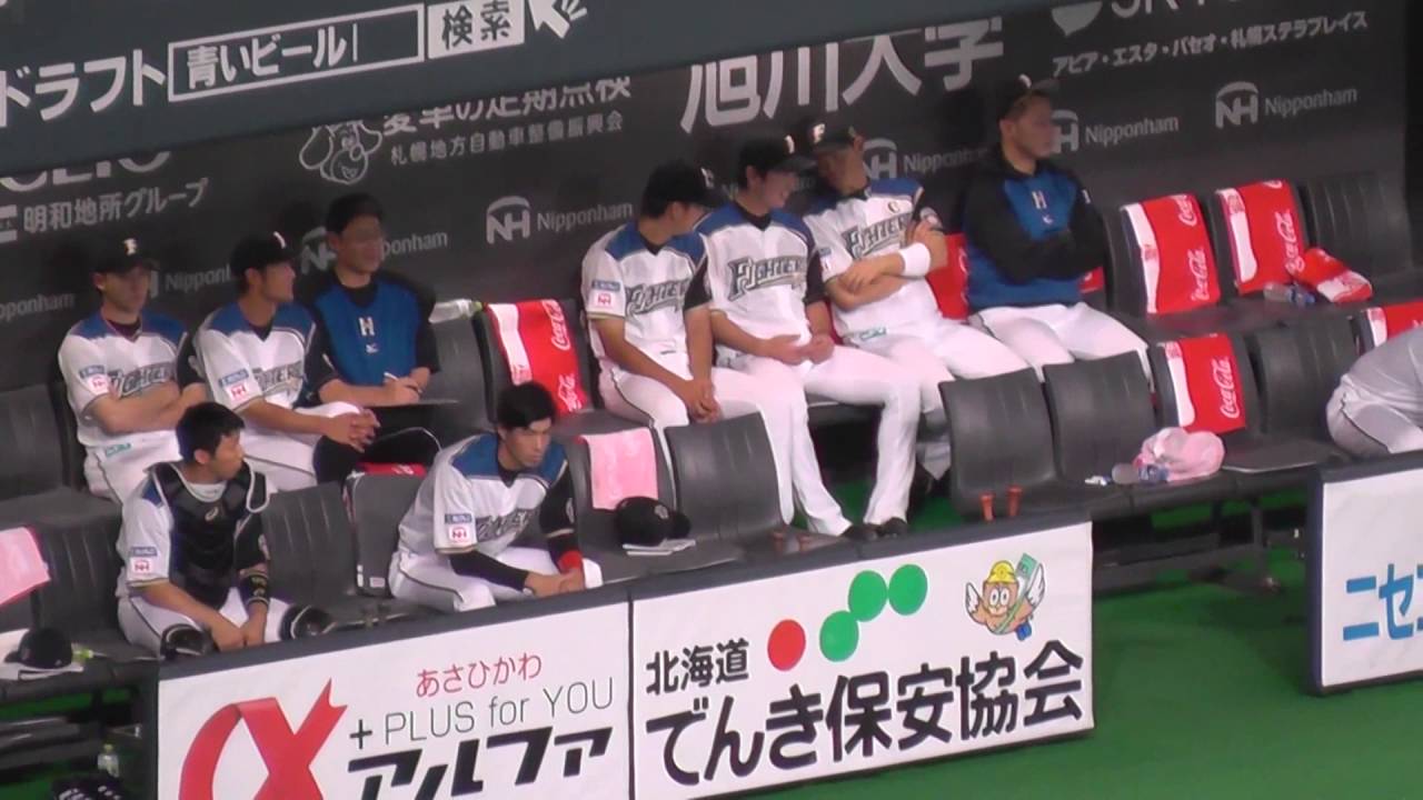 大野奨太さんと飯山さんに絡まれる松本剛君@札幌ドーム 2016.07.09