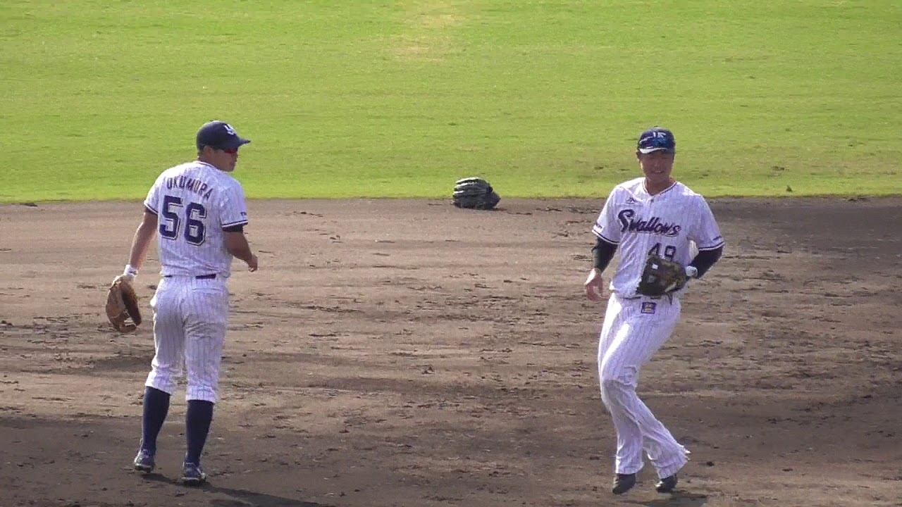 山田哲人#1、西浦直亨#3、武内晋一#8、荒49木貴裕#24、廣岡大志#36、谷内亮太#46、渡邉大樹#49、藤井亮太#51、奥村展征#58