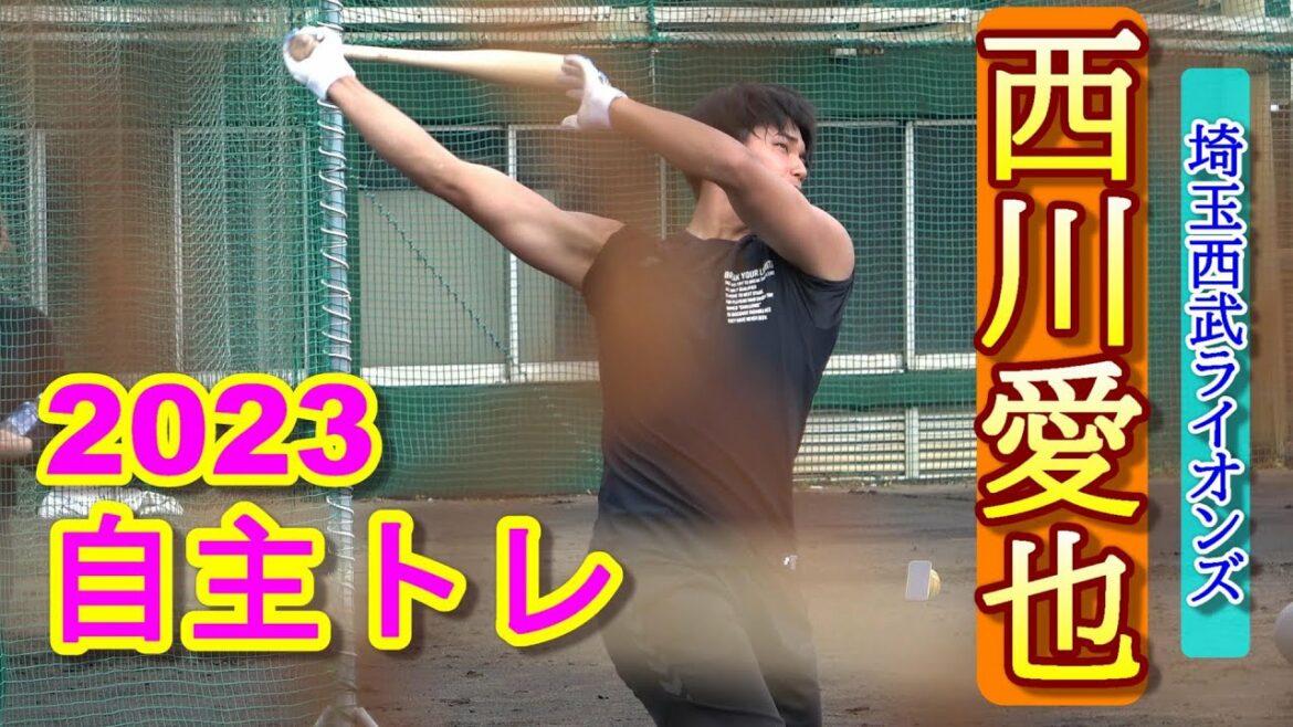 2023年2月1日のプロ野球キャンプ入りを前に沖縄で合同自主トレを行う埼玉西武ライオンズの西川愛也選手。自主トレ・打撃練習!