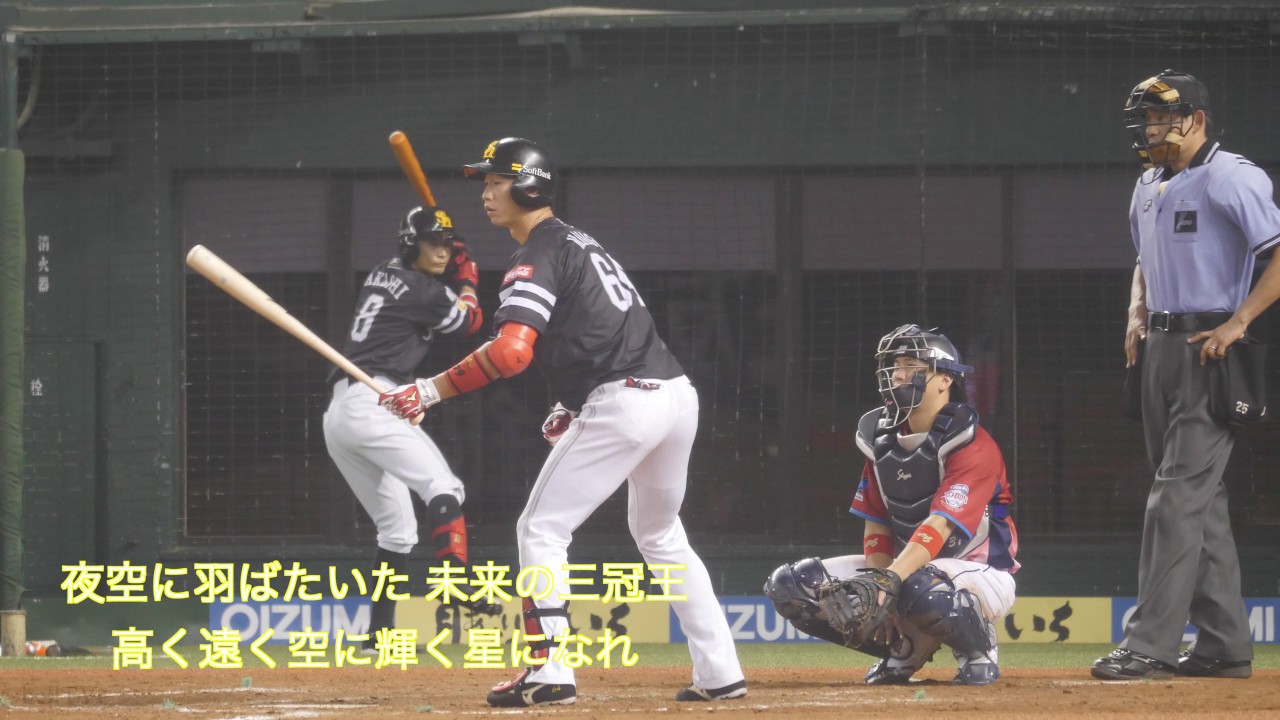 歌詞 夜空に羽ばたいた 未来の三冠王 高く遠く空に輝く星になれ #プロ野球Fukuoka SoftBank HawksNippon Professional Baseball (Sports Association)NPB応援応援歌応援風景真砂勇介福岡ソフトバンクホークス野球 NPBHUB.COM | The Fanbase of Nippon Baseball & Nippon Professional Baseball