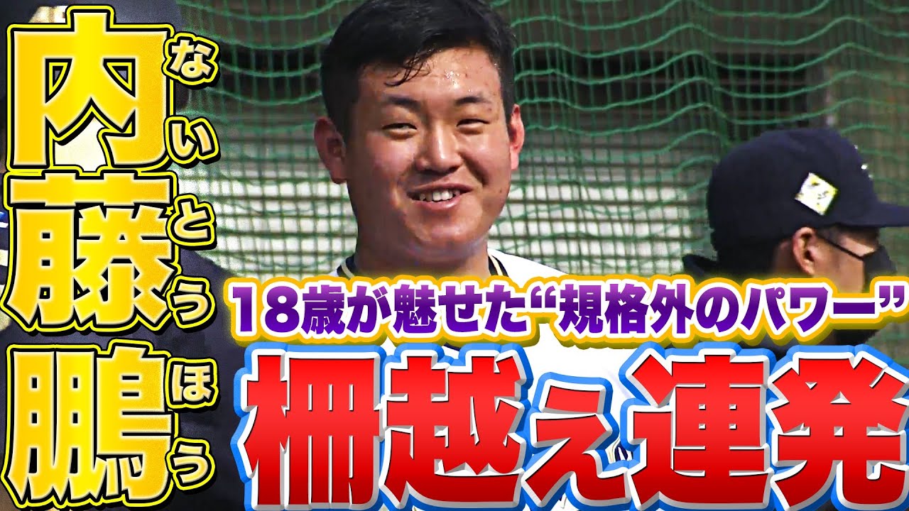ドラフト2位ルーキー・内藤鵬が打撃練習に登場すると、規格外のパワーで柵越えを連発。