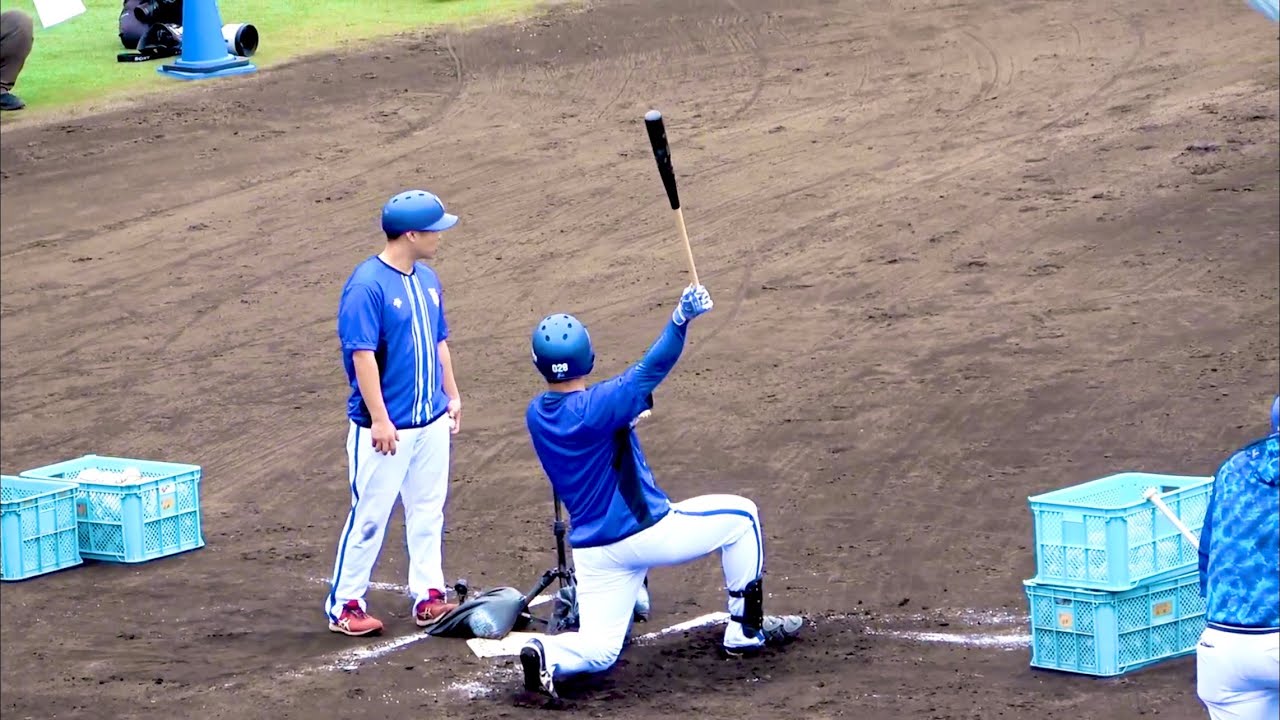 豪快なスイングで打球を飛ばす勝又温史 沖縄キャンプ 横浜DeNAベイスターズ 2023/2/4
