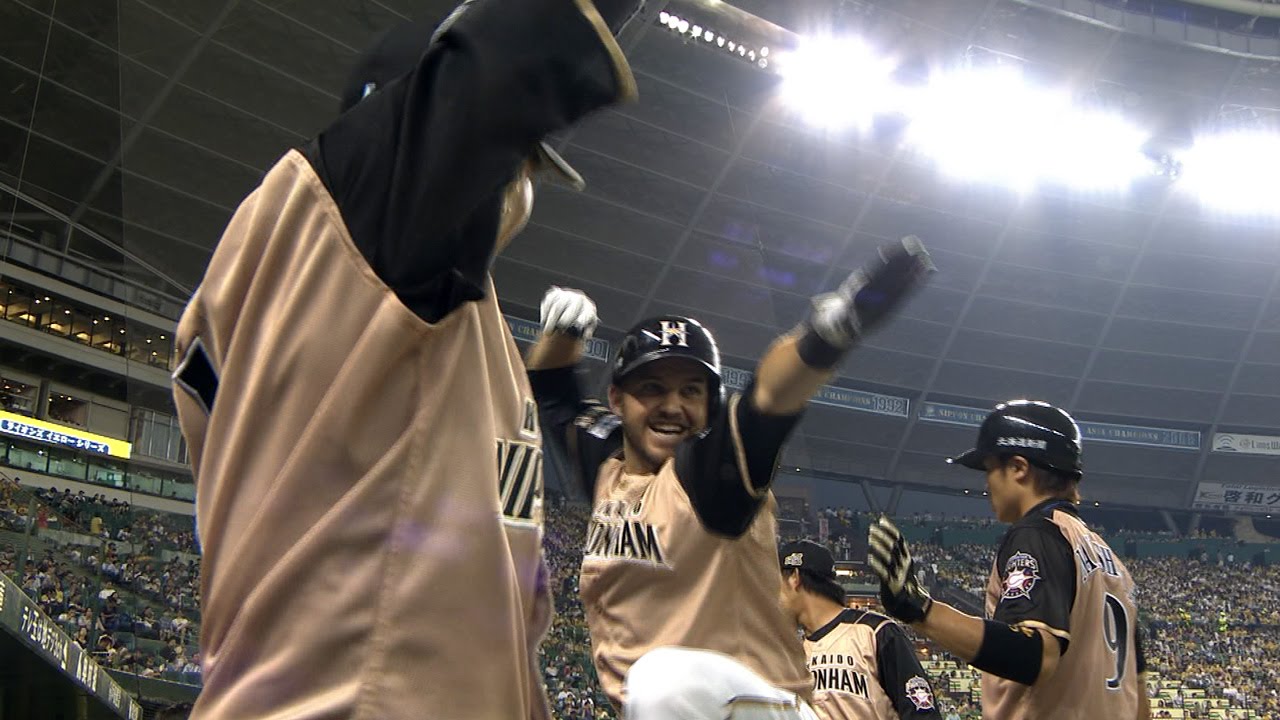 前日までに2日連続で決勝打を放ったレアード。この日も4回に18号2ランを放つ活躍、日本ハムが同点に追いついた。 (7月26日 埼玉西武-日本ハム)