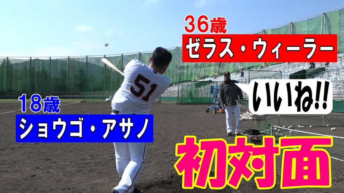 今季から打撃コーディネーターを務めるウィーラーとドラフト1位ルーキーの浅野翔吾選手が初対面!
