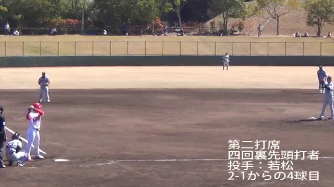 第二打席でドラゴンズ先発の若松投手からレフトスタンドへ先制の、