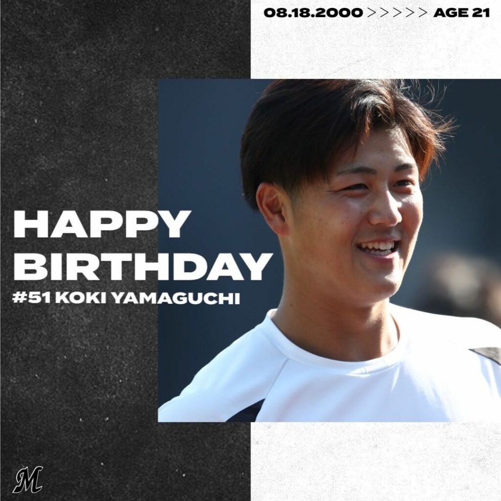 本日8/18は、 #山口航輝 選手の21歳の誕生日です。おめでとうございます! #chibalotte #happybirthday Chiba Lotte MarinesChiba Lotte Marines Official MediachibalottehappybirthdayNPB Pacific LeagueOfficial Media千葉ロッテマリーンズ山口航輝 NPBHUB.COM | The Fanbase of Nippon Baseball & Nippon Professional Baseball