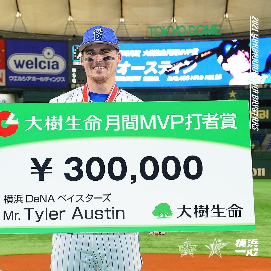 . 試合前に⼤樹⽣命6月度月間MVP賞を獲得した #オースティン 選手の表彰が行われました . #congratulations @taustin2121 #baystars baystarscongratulationsNPB Central LeagueOfficial MediaYOKOHAMA DeNA BAYSTARSYOKOHAMA DeNA BAYSTARS Official Mediaオースティン横浜DeNAベイスターズ NPBHUB.COM | The Fanbase of Nippon Baseball & Nippon Professional Baseball