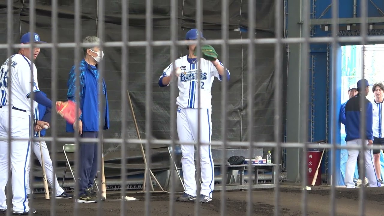 小谷コーチとフォームの修正をする阪口皓亮 沖縄キャンプ 横浜DeNAベイスターズ 2023/2/5