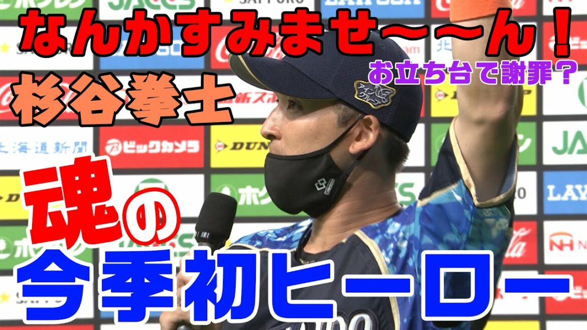 サヨナラ押し出しフォアボールを選び、今季初のヒーローに選ばれた杉谷拳士!魂の込もったヒーローインタビューをぜひぜひご覧ください!