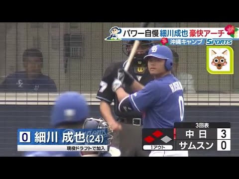 11日に行われた今キャンプ最初の対外試合。4番に抜擢されたのはパワーが自慢の24歳、現役ドラフトで加入した細川成也。豪快なスイングから放たれた打球は、チーム第1号となるホームラン。期待の長距離砲は新天地での覚醒を誓います。