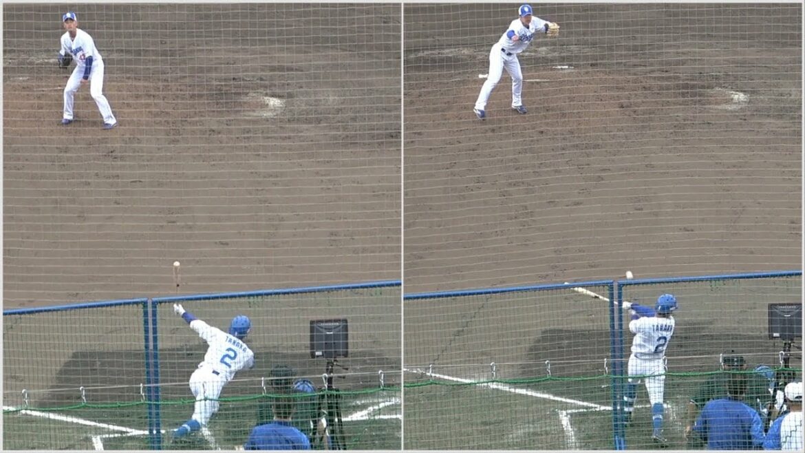 田中幹也、巧みなバッティングで砂田&森博人を相手に2打数2安打! (2023/02/09)
