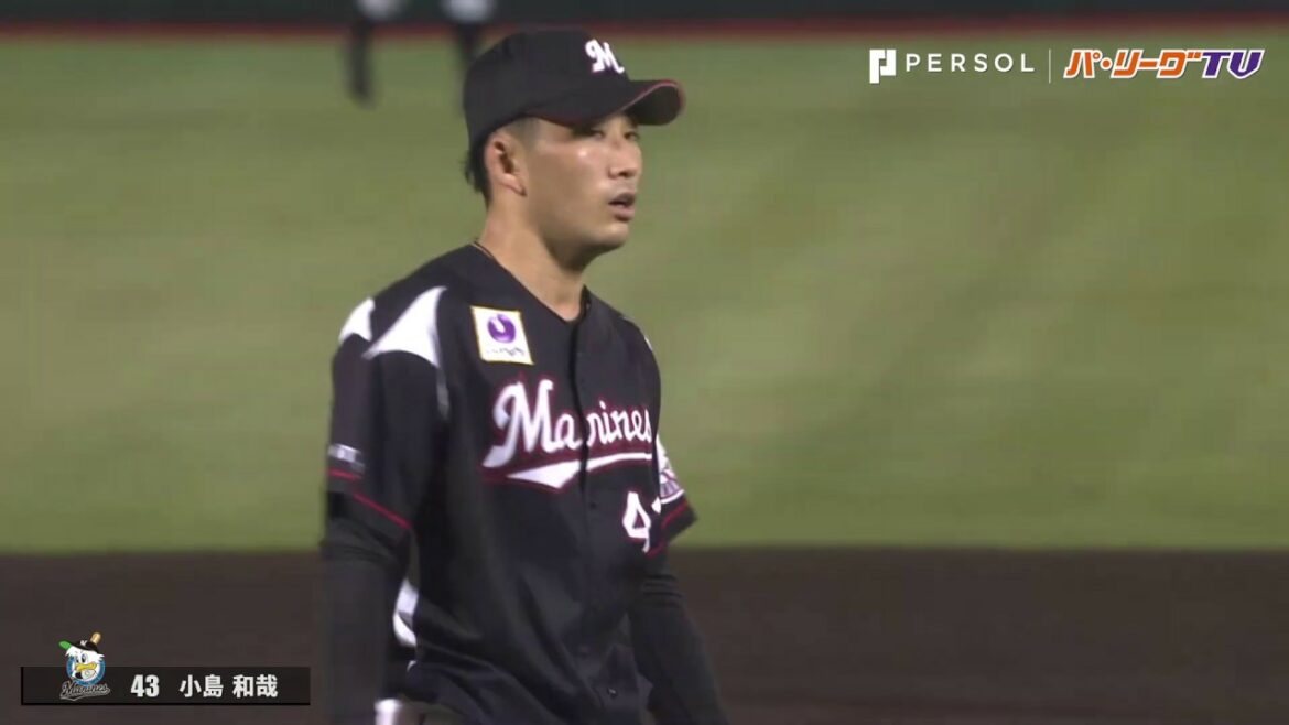 千葉ロッテ・小島和哉はピンチの場面。しかし、東北楽天・島内、浅村に両コーナーへしっかりと制球された直球で連続三振!! ルーキー離れした度胸を見せる。