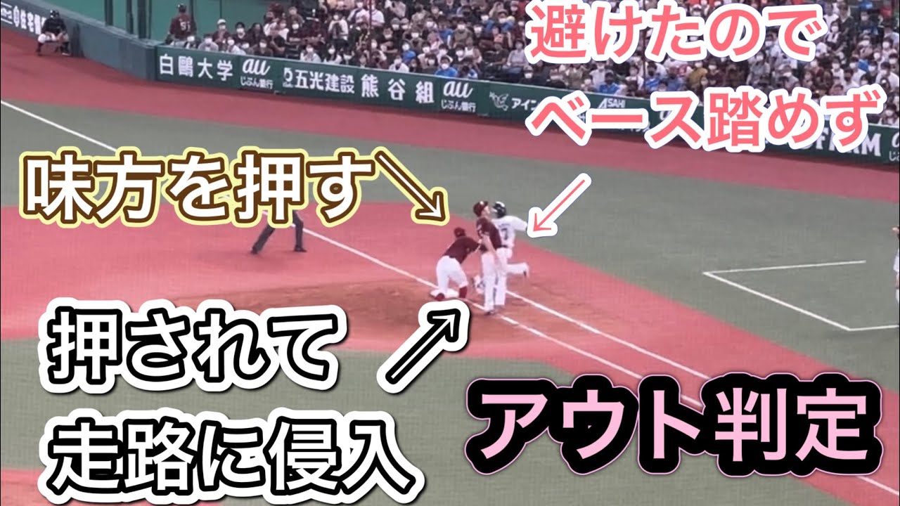 金子にぶつかりそうになり、金子は避けた動作のせいでベースが踏めなくなりそのままアウトに