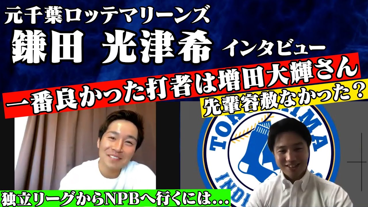 元千葉ロッテマリーンズ・徳島インディゴソックスOB鎌田光津希選手へのインタビューです。インディゴソックスで元チームメイトの谷田成吾球団代表と共に振り返ります。