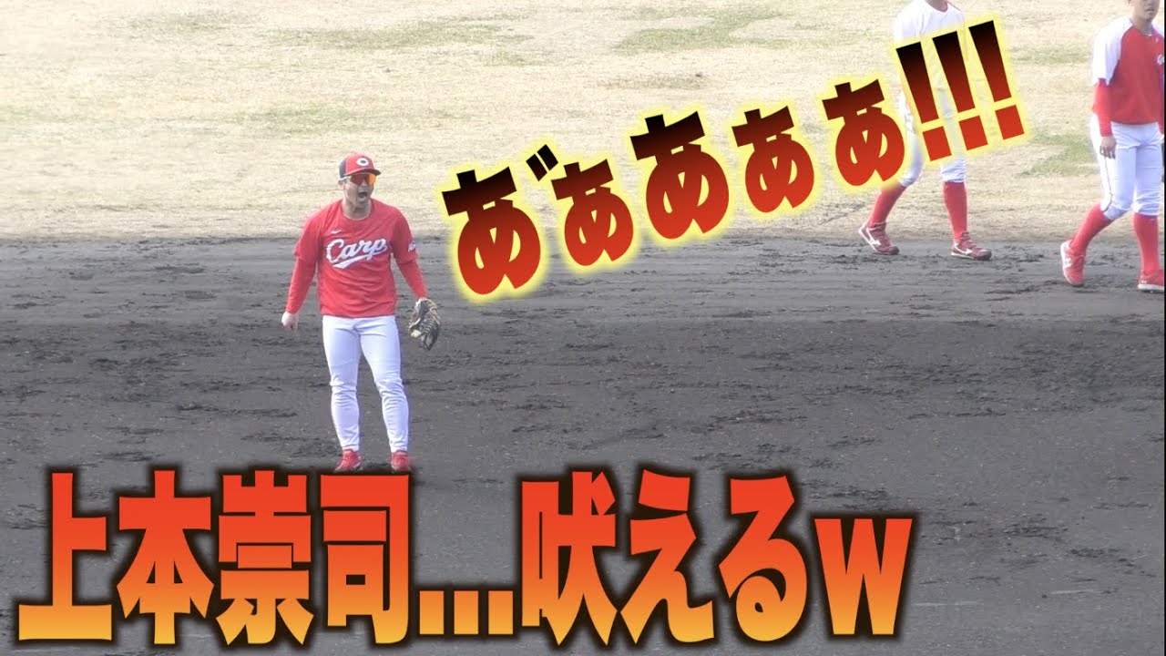 上本崇司 吠える!内野ノック中に上手くいかず時折叫ぶ上本崇司が面白すぎるw#カープ#広島#キャンプ#上本崇司