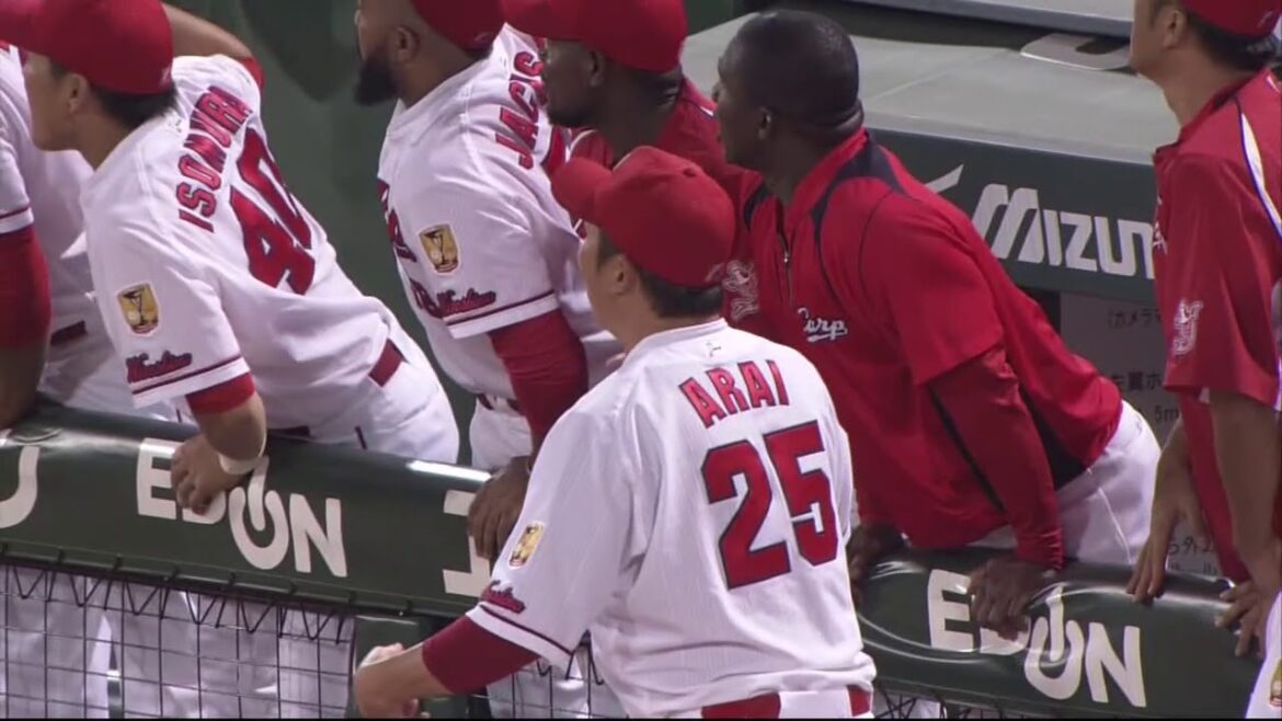 10回裏2アウトから飛び出た下水流選手の逆転サヨナラホームランを自分のことのように喜ぶ新井さん。