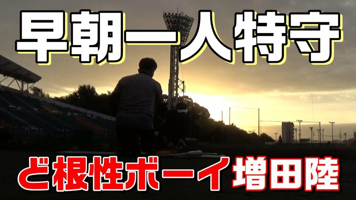 ど根性ボーイこと、増田陸選手の早朝一人特守!川相昌弘、元木大介の両コーチの指導にも熱が入ります!