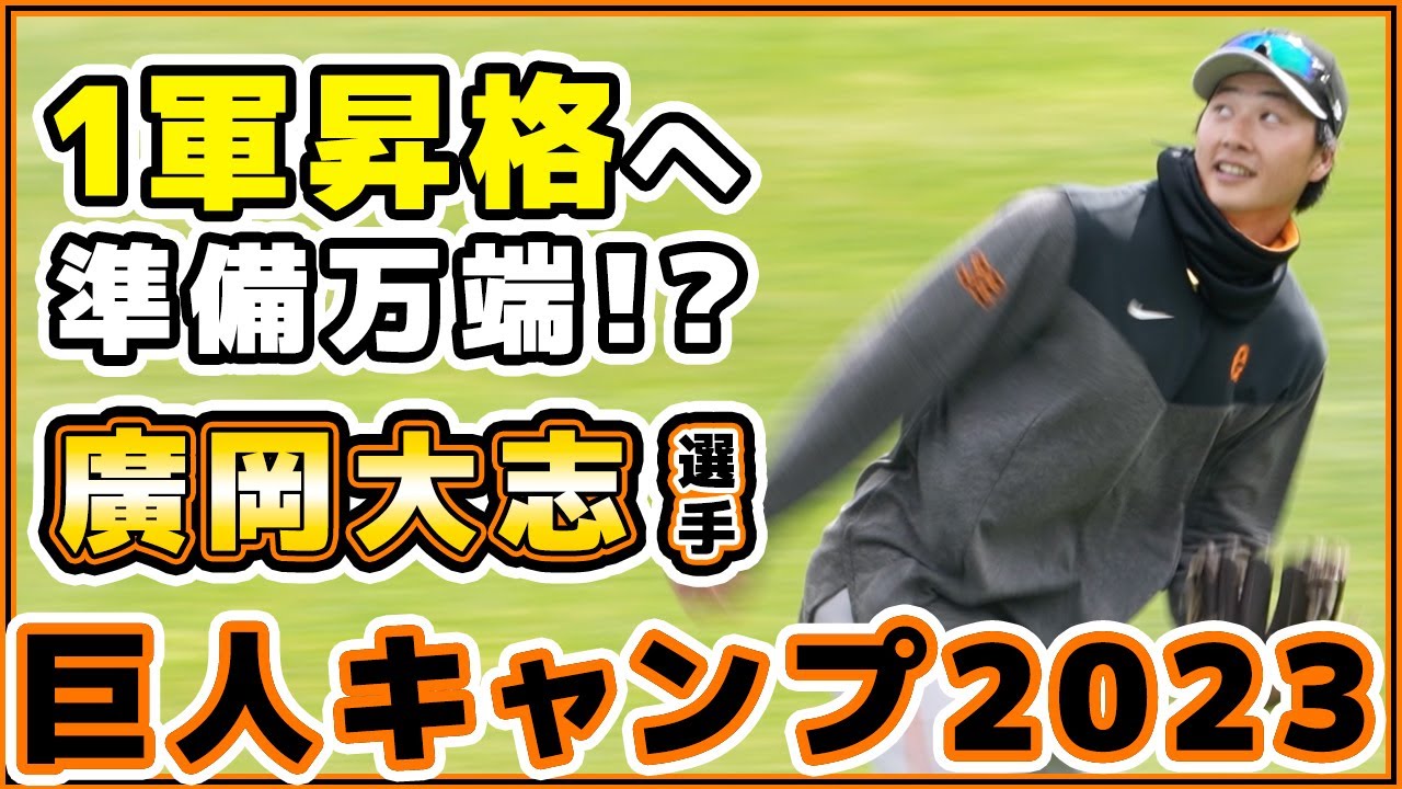 プロ野球ニュース!読売巨人軍の春季キャンプ2023、廣岡大志選手、2月22日のジャイアンツ2軍 VS オリックス2軍の練習試合の様子と、23日の練習風景です。