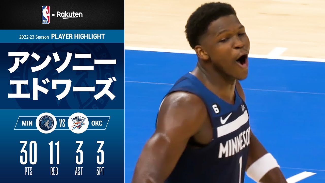 日本時間10月24日、ウルブズのアンソニー・エドワーズがサンダー戦で30点を記録し、チームの勝利に貢献!