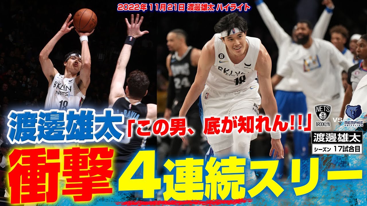【速報】渡邊雄太がとんでもない活躍で完全にゲームの流れを変える!ホーネッツ戦 2022/11/6https://youtu.be/chPseavXkHw