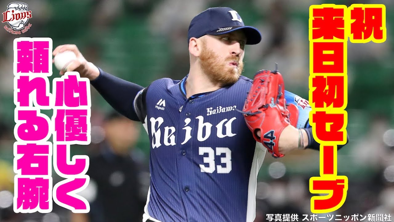 今日、4月4日(日)対福岡ソフトバンク戦で #ギャレット 投手が来日初セーブをマークしました!
