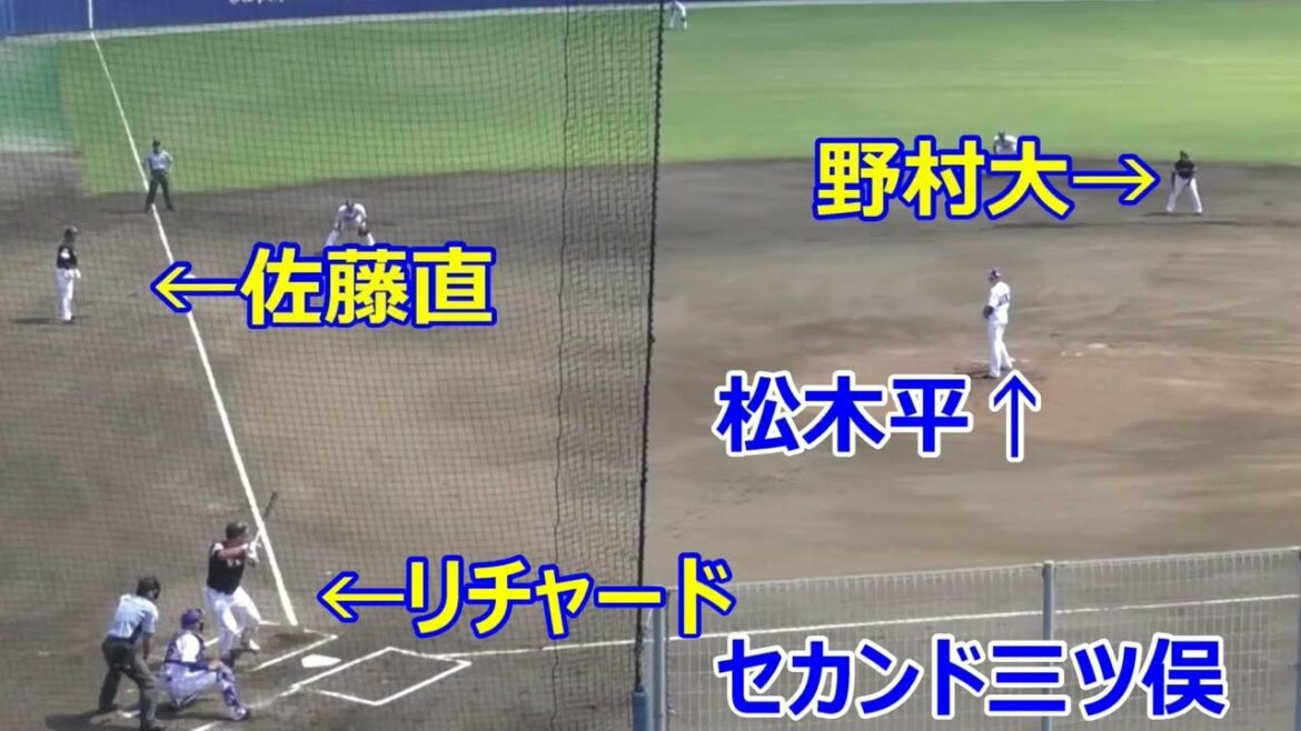 1アウト23塁のピンチで ソフトバンクバッターのリチャードのセカンドゴロを セカンドの三ツ俣は本塁へボテボテの送球 3塁ランナーは走らずに塁にもどったので ピンチが広がったかと思ったら 2塁ランナーは飛び出しており 挟殺プレーが成立した #中日ドラゴンズ#福岡ソフトバンクホークス#松木平優太#野村大樹#佐藤直樹#三ツ俣大樹#砂川リチャード#ウエスタンリーグ Chunichi Dragons中日ドラゴンズ松木平優太 NPBHUB.COM | The Fanbase of Nippon Baseball & Nippon Professional Baseball