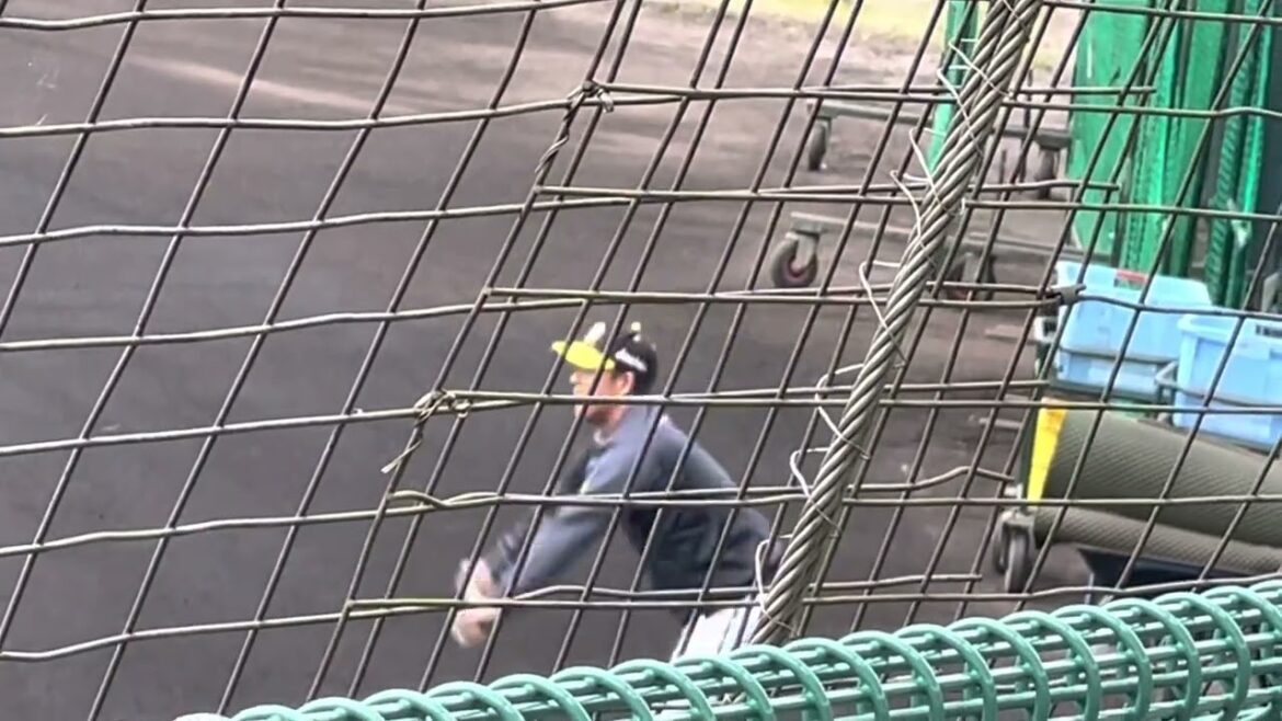 【阪神キャンプ】魂レボリューションにノリノリでウォーミングアップする谷川昌希打撃投手⚾️ #阪神タイガース #阪神 #谷川昌希