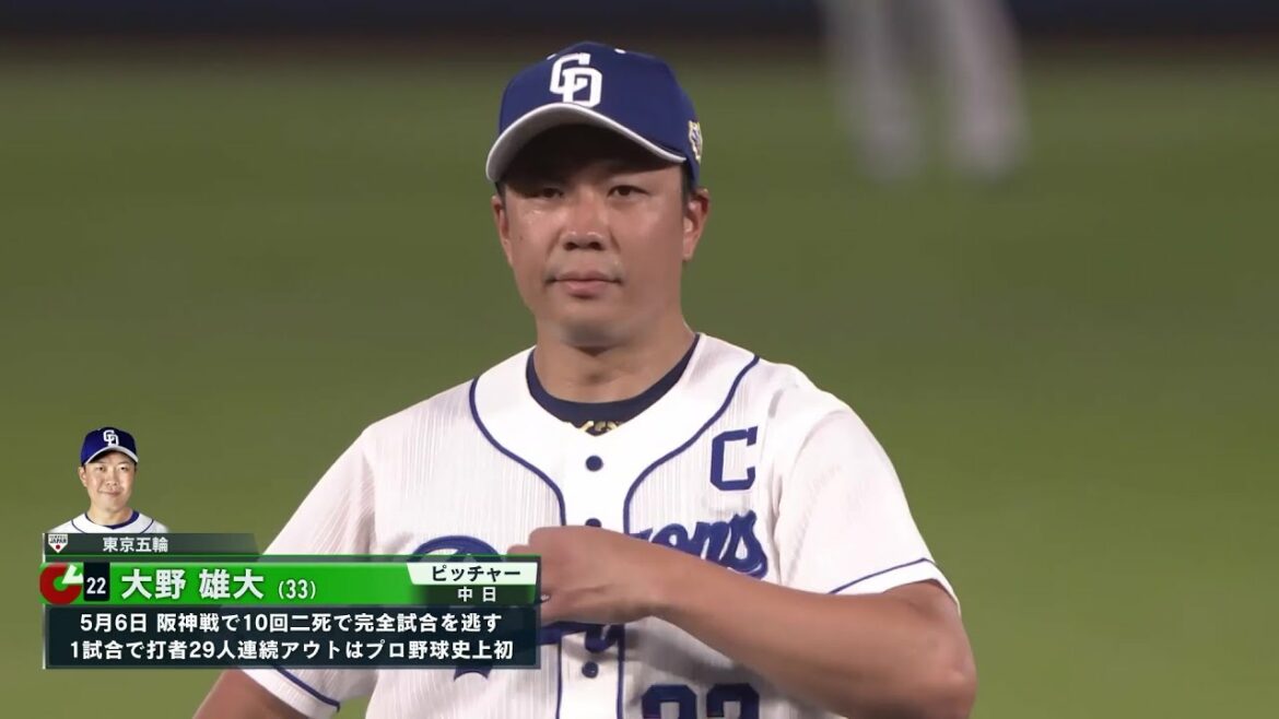 セ・リーグ2番手で登板した大野雄大(中日)は2イニングをパーフェクトピッチング!
