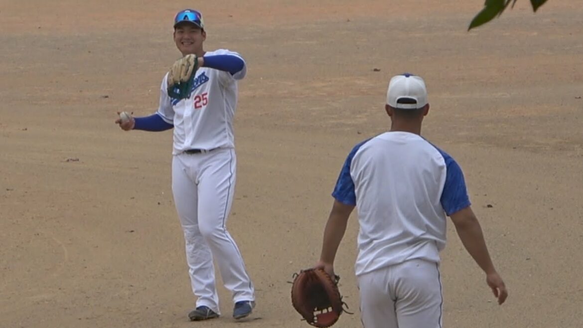 キャッチボールするリハビリ組の石橋&石川昂弥、全然敬語を使ってないっぽい昂弥(笑) (2023/02/24)