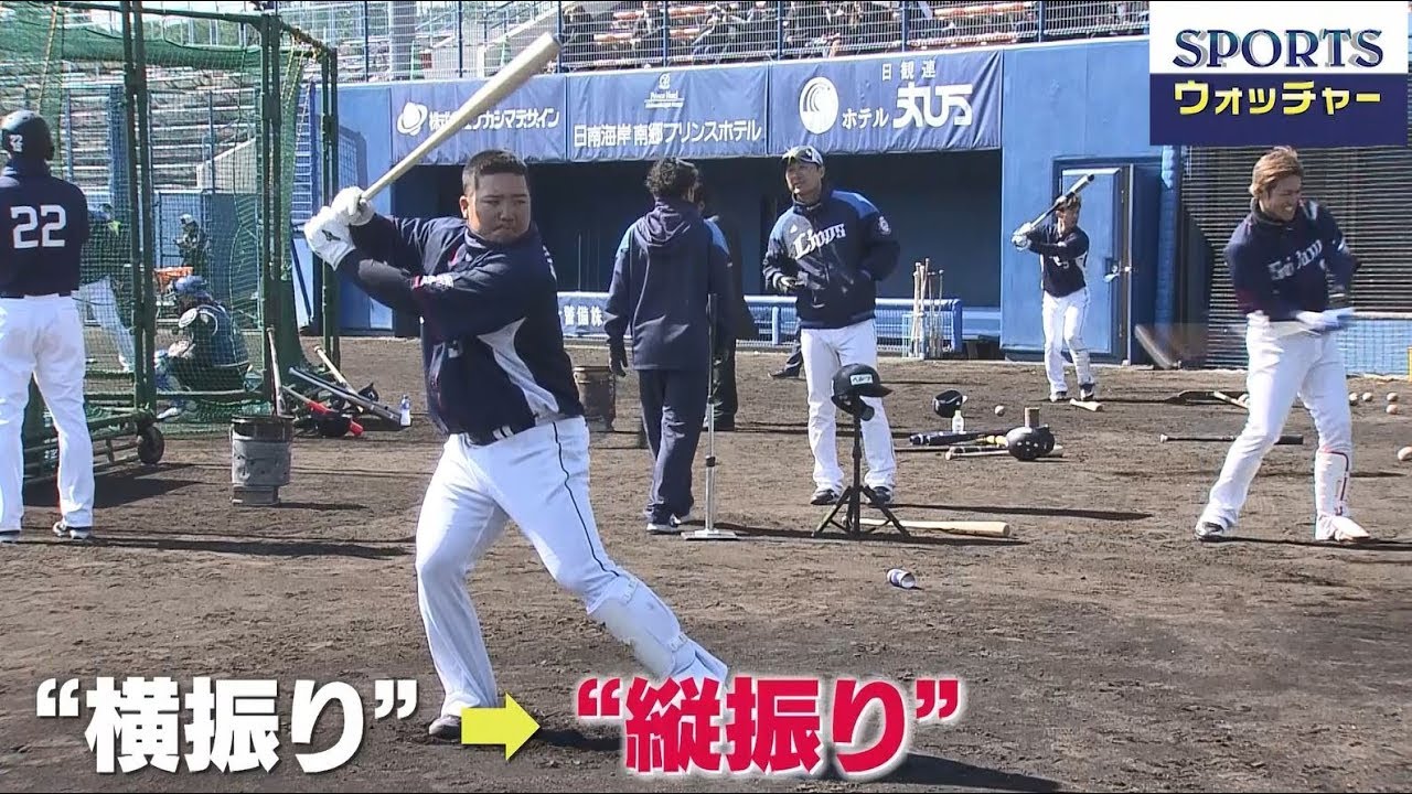 2年連続ホームラン王、西武の山川穂高。さらなる飛躍のため、今取り組んでいるのが横振りではなく縦に振るスイング。メジャーで現役唯一の三冠王、ミゲル・カブレラ(デトロイト・タイガース)を参考にバッティングフォームを改造中だ。