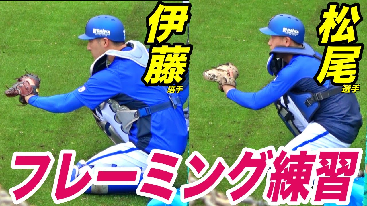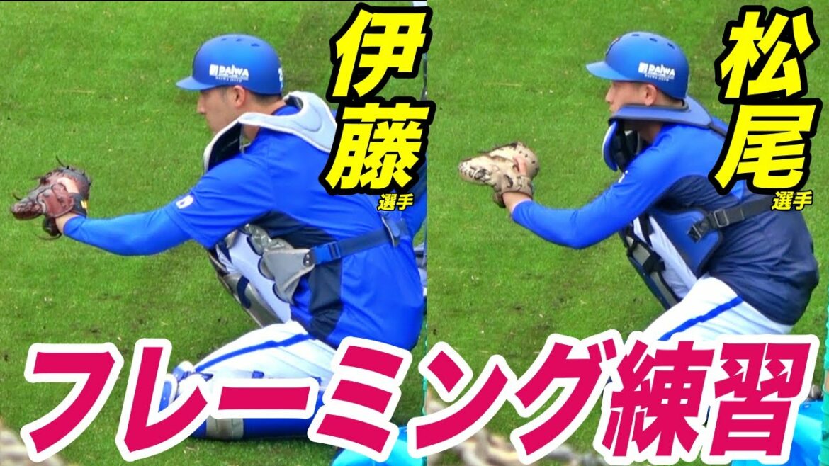 これがベテランのテクニックか!!相川コーチが指導、松尾汐恩選手&伊藤光選手のフレーミング練習!