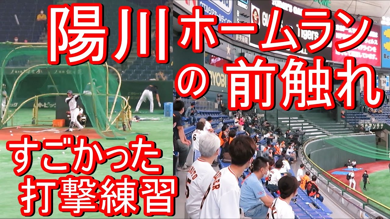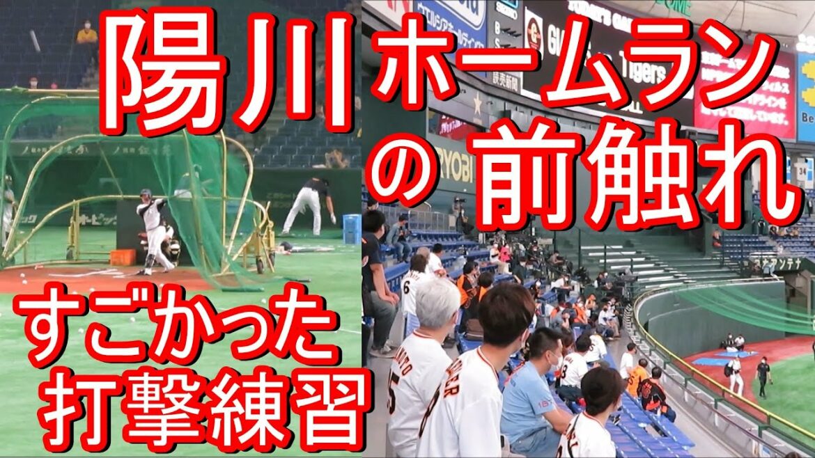 陽川尚将2号ホームランの前触れ。打撃練習の時、ポンポンスタンドに運んでいました。調子がいいんだなと想像できました。スタメン器用に応えましたね!