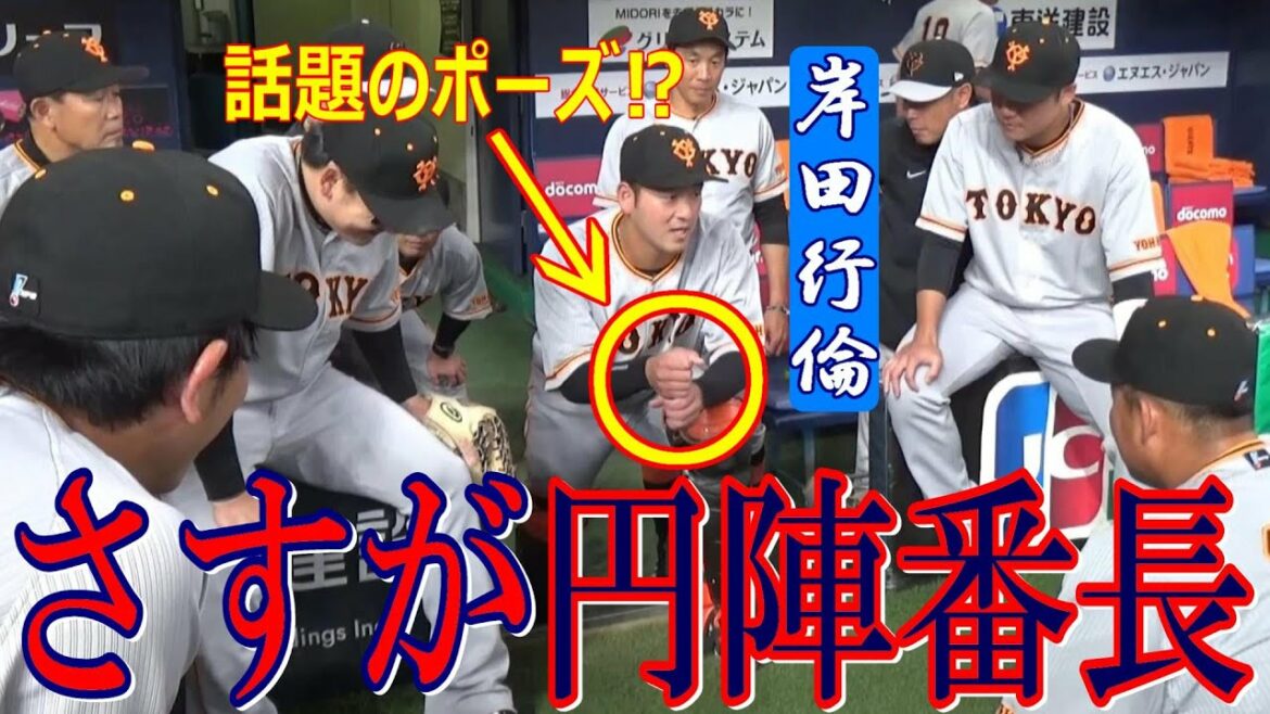 3月11日のオープン戦試合前。円陣の声出しに指名された #円陣番長 #岸田行倫 選手は、#侍ジャパン で話題のあのポーズに触れ、坂本勇人、#長野久義 両選手ら先輩をうならせる見事な円陣を披露しました。
