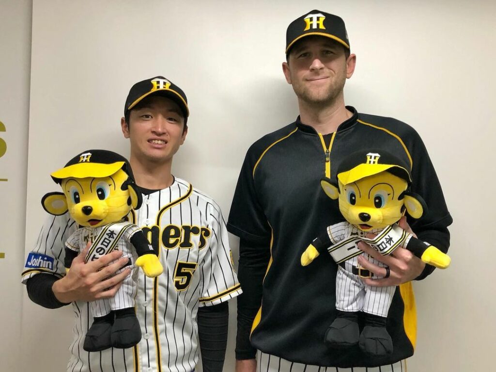 高身長のガンケル選手に合わせて近本選手、背伸びをしてくださっています😁