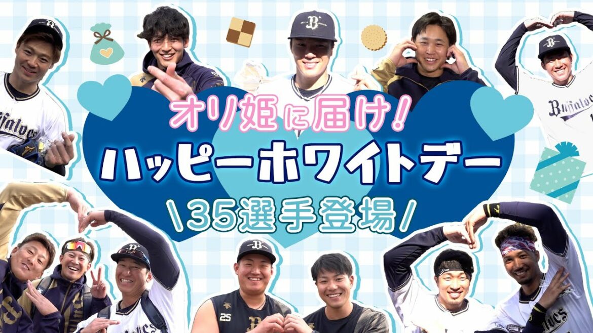 ホワイトデー企画!バファローズ選手に、バレンタインのお返しとして、オリ姫の皆様への感謝の言葉を伝えながらハートポーズをしてもらいました!なんと35選手が登場!全編はBPB DXで♪