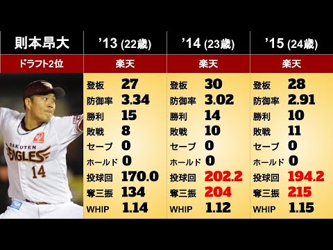 則本昂大選手の年度別個人成績をまとめました。(2022年終了時点)
