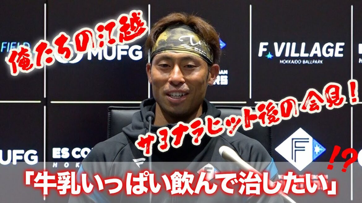サヨナラヒットを打った江越選手の会見。