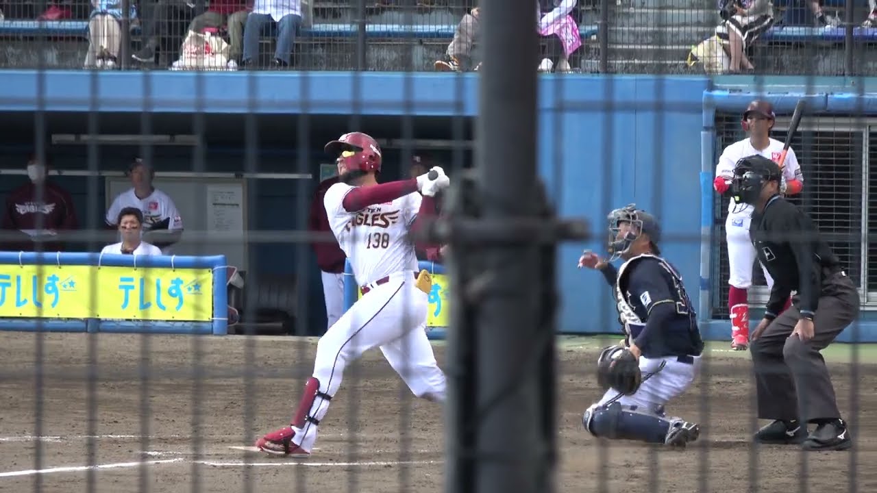 東北楽天ゴールデンイーグルス ウレーニャ選手 あと少しでホームランのレフトへのタイムリーツーベースヒット 二塁打 第3打席 2023/3/15 草薙球場 VS オリックスバファローズ